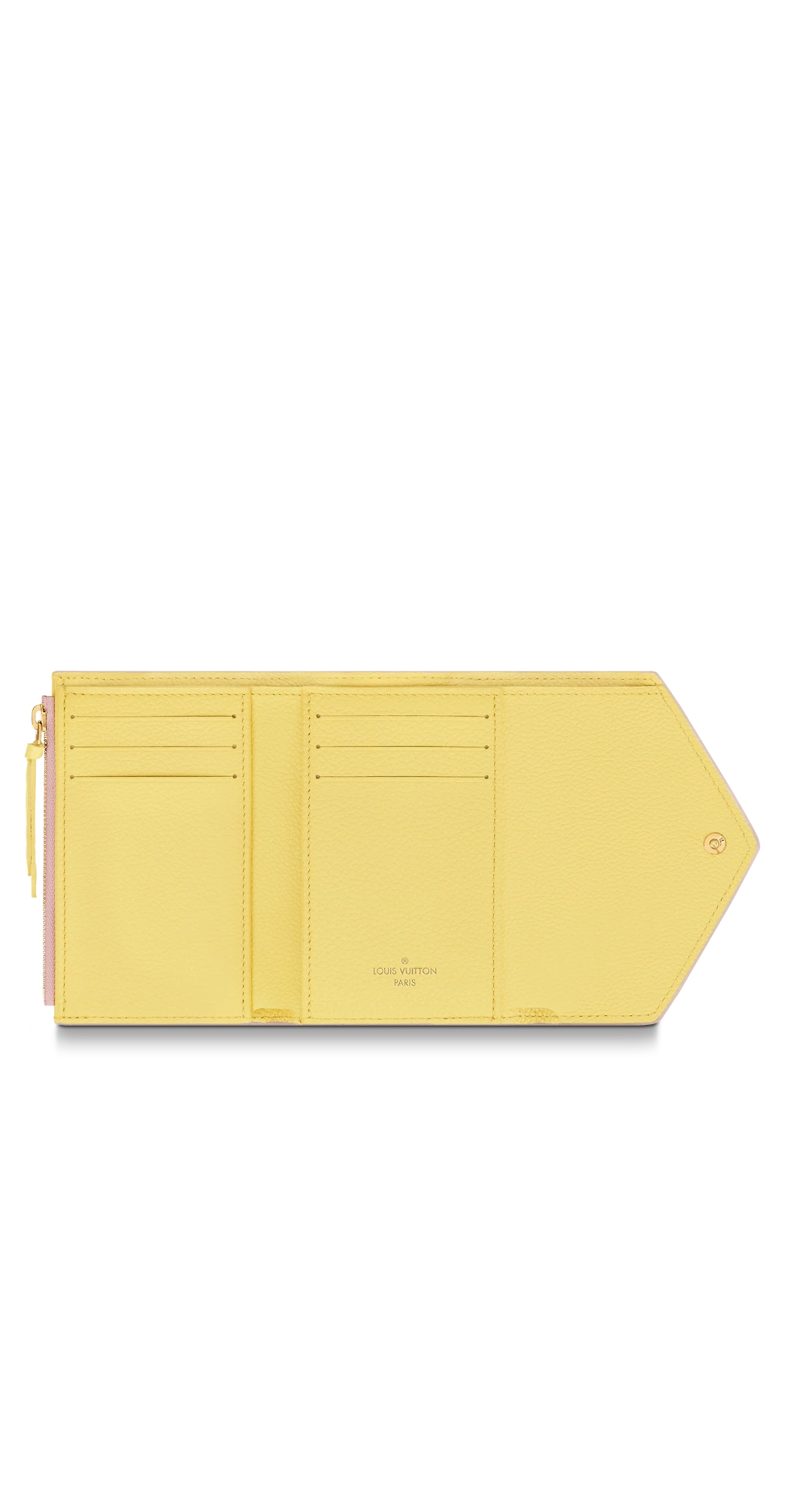 • As befits the Spring Collection, the Portefeuille Victorine has been reinterpreted in three different colors of monogrammed unplanted leather. The supple grained leather is embossed with the iconic monogram pattern. With space for banknotes, coins and cards, it is small but has a thoughtful design that can hold everything.